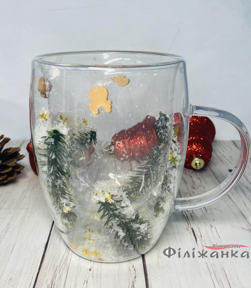 Чашка скляна подвійна Новорічний настрій 350 мл (60869)