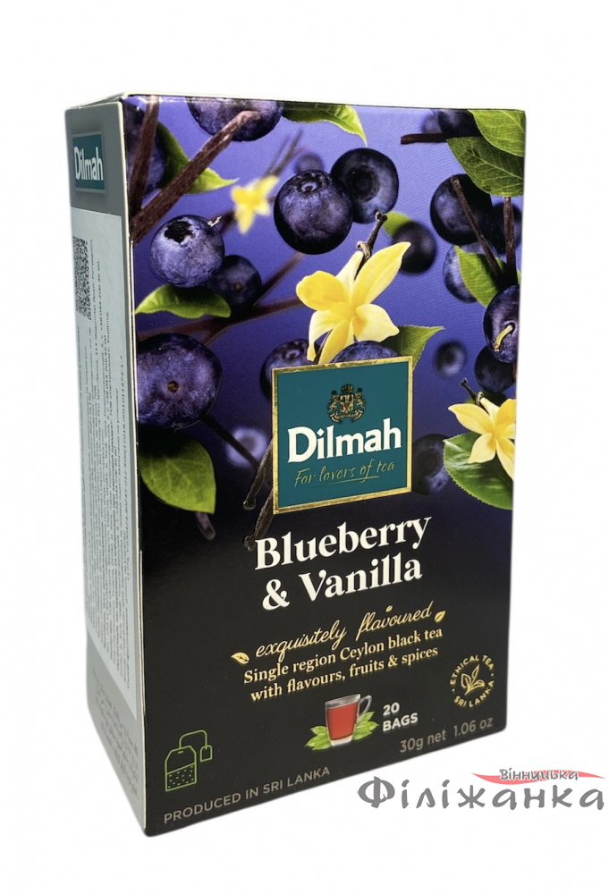 Чай Dilmah Чорний цейлонський з смаком лохина та ванілі 20 пакетиків (60677)