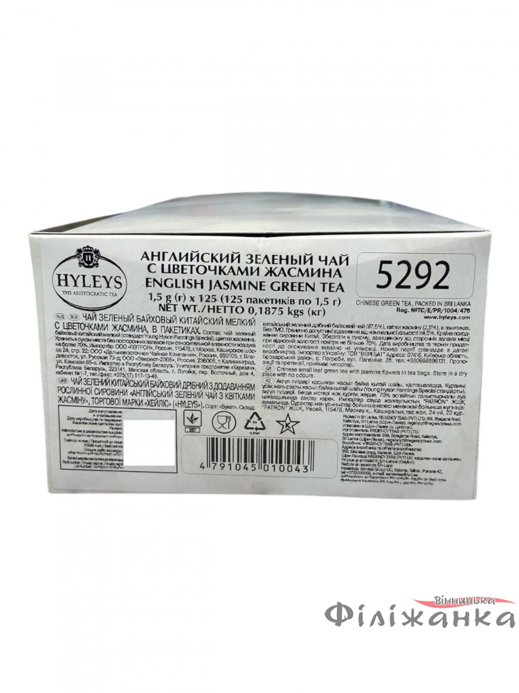 Чай Hyleys Англійський зелений з квіточками жасміна 125 пакетиків*1,5 г (58363)