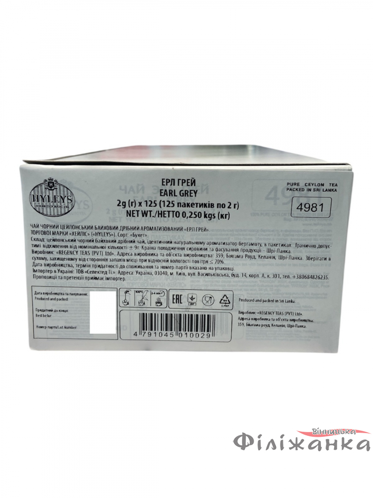 Чай Hyleys Earl Grey чорний з бергамотом 125 пакетиків*2г (57036)