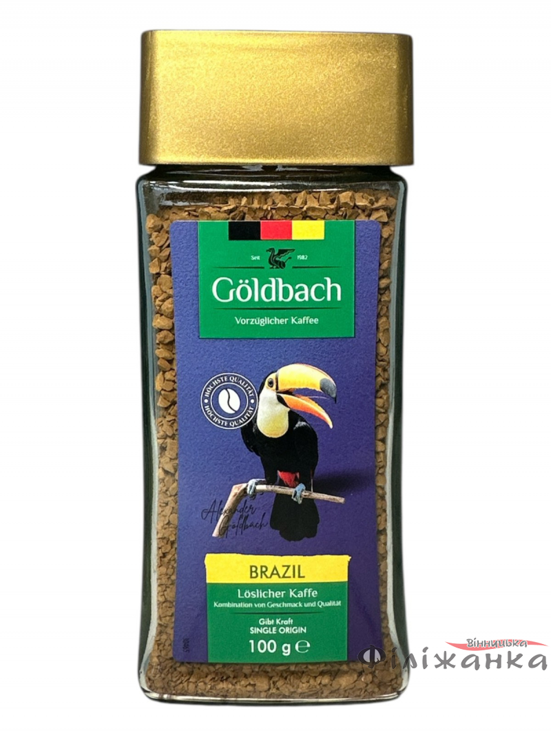 Відкрийте для себе неперевершений смак розчинної кави Goldbach Brazil, що ідеально підходить для швидкого приготування та насолоди в будь-який момент. Цей вишуканий напій, вагою 100 грамів, дбайливо запакований у елегантну скляну банку, яка зберігає свіжість та багатий аромат кавових зерен. Goldbach Brazil – це ваш щоденний ритуал, який поєднує зручність та високу якість.
