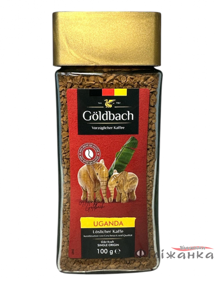Кава Goldbach Uganda розфасована в Німеччині, що є запорукою суворого контролю якості та дотримання високих стандартів на кожному етапі виробництва. Елегантна скляна банка вагою 100 грамів не тільки чудово збереже свіжість та аромат гранульованої кави, але й стане стильним доповненням до вашої кухні.
