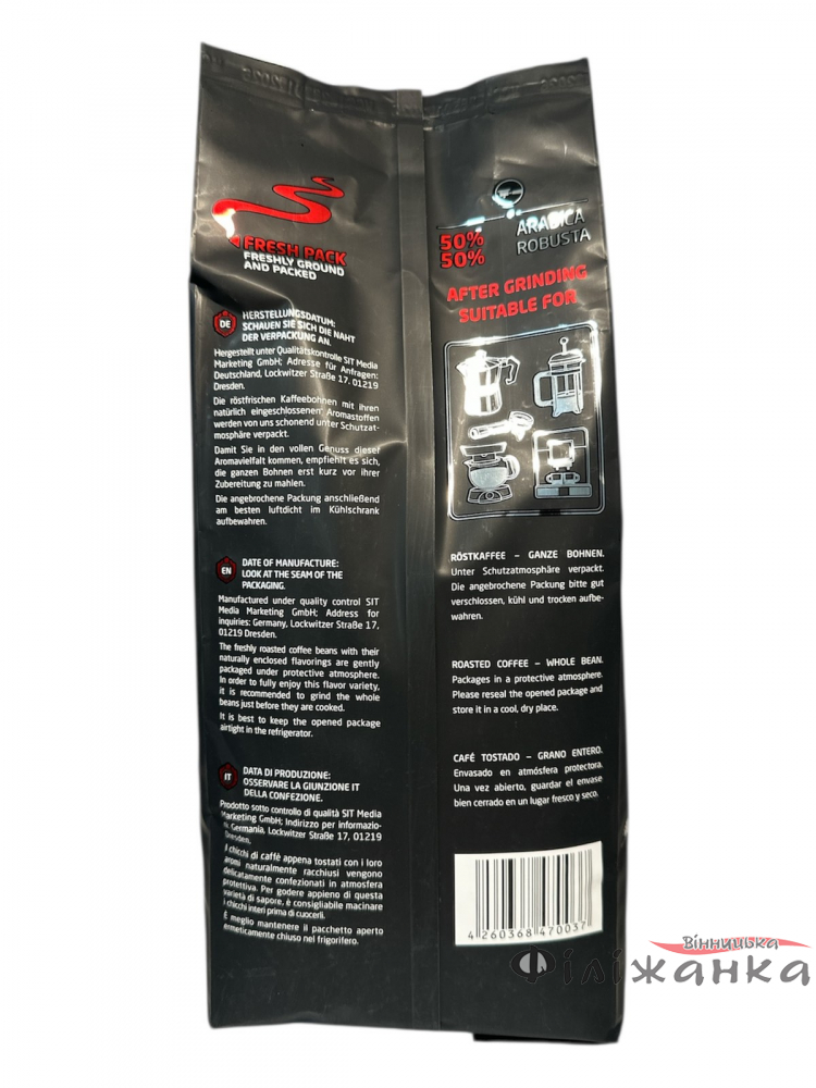 Кожен кілограм цієї кави – це обіцянка незмінної свіжості та інтенсивного аромату завдяки надійній фольгованій упаковці, що зберігає якість з Німеччини.