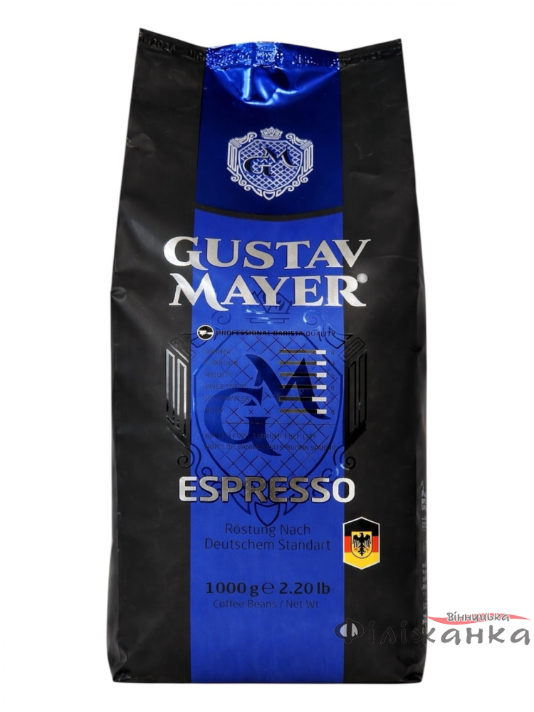 Насолода справжнім еспресо без компромісів – це можливо завдяки Gustav Mayer Espresso синя, де кожен ароматний відтінок відчувається повною мірою, а серцебиття залишається спокійним.