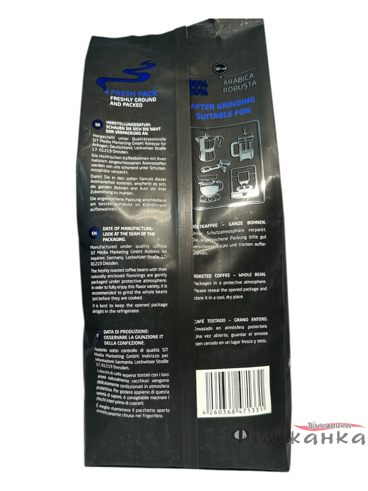 Gustav Mayer Espresso синя відрізняється своїм ретельно підібраним купажем та високою якістю, підтвердженою місцем розфасовки в Німеччині. Це комерційна упаковка, розрахована на інтенсивне використання або тривале домашнє насолодження.