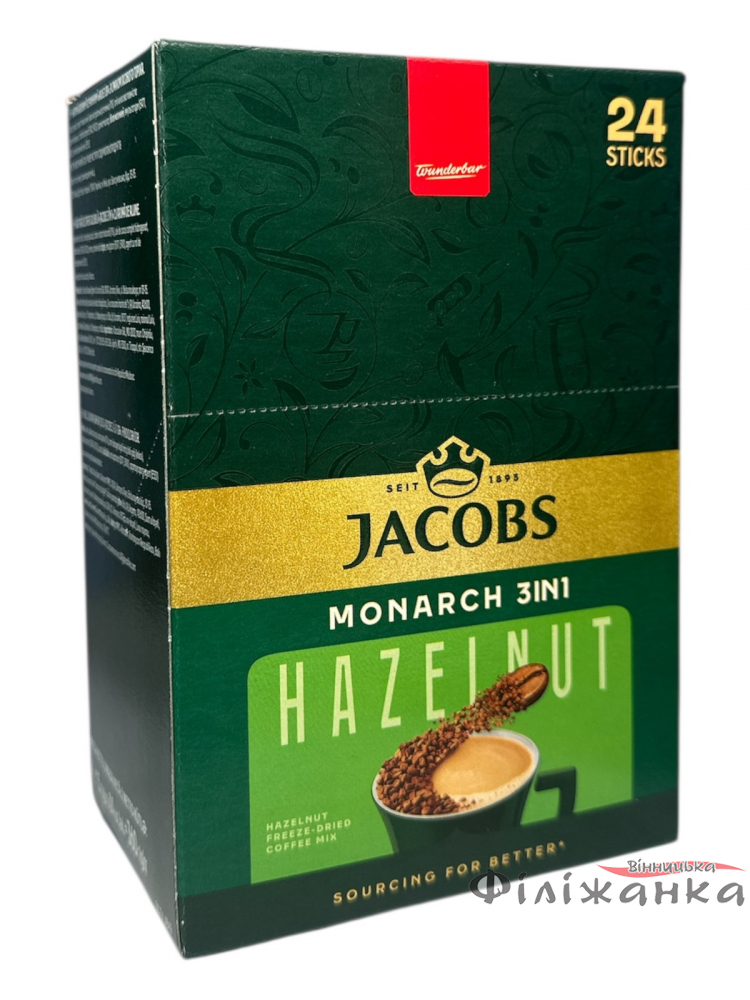 Кава Jacobs Hazelnut поставляється у зручній упаковці, що містить 24 індивідуальні стіки по 15 грамів кожен. Цей формат ідеальний для: