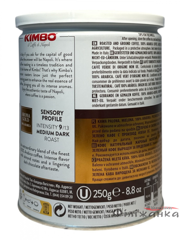 Пориньте у вишуканий смак справжньої італійської кави з Kimbo Aroma Gold. Цей бленд є втіленням пристрасті та майстерності, створений для тих, хто цінує глибокий аромат та насичений смак у кожній краплі. Вироблена з 100% добірної арабіки, ця мелена кава пропонує неперевершену якість, що перетворить ваш ранковий ритуал або денну перерву на особливий момент насолоди.