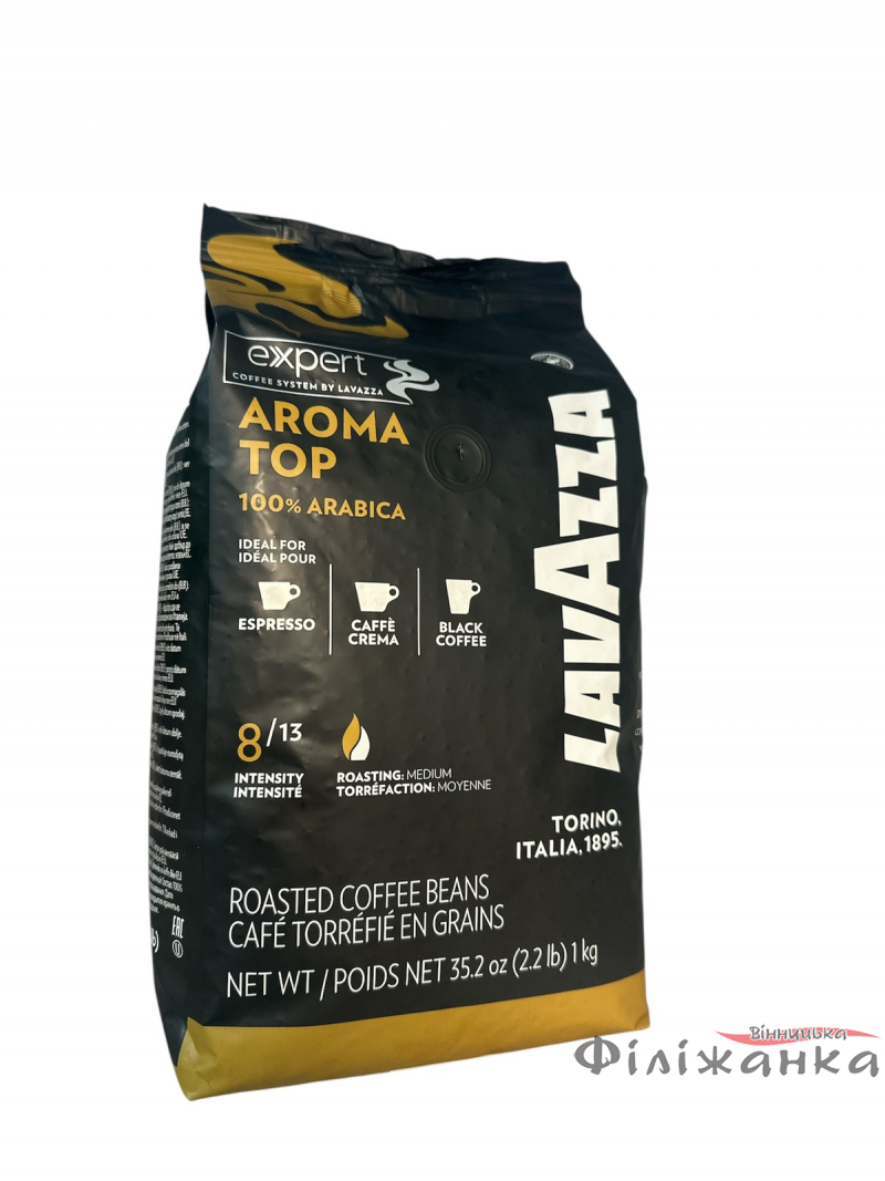 "Lavazza Aroma Top: досконалість 100% Арабіки, що оживає у кожній краплині, даруючи м'якість смаку та енергію дня."