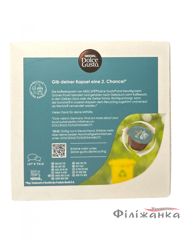 Виробник Nescafe гарантує високу якість продукції, що підтверджується не лише відбірною сировиною, а й процесом розфасування. Кава Nescafe Dolce Gusto Dall Crema Latte розфасовується в Німеччині, країні, відомій своїми строгими стандартами якості та передовими технологіями виробництва. Це забезпечує відповідність продукту міжнародним нормам та очікуванням споживачів.