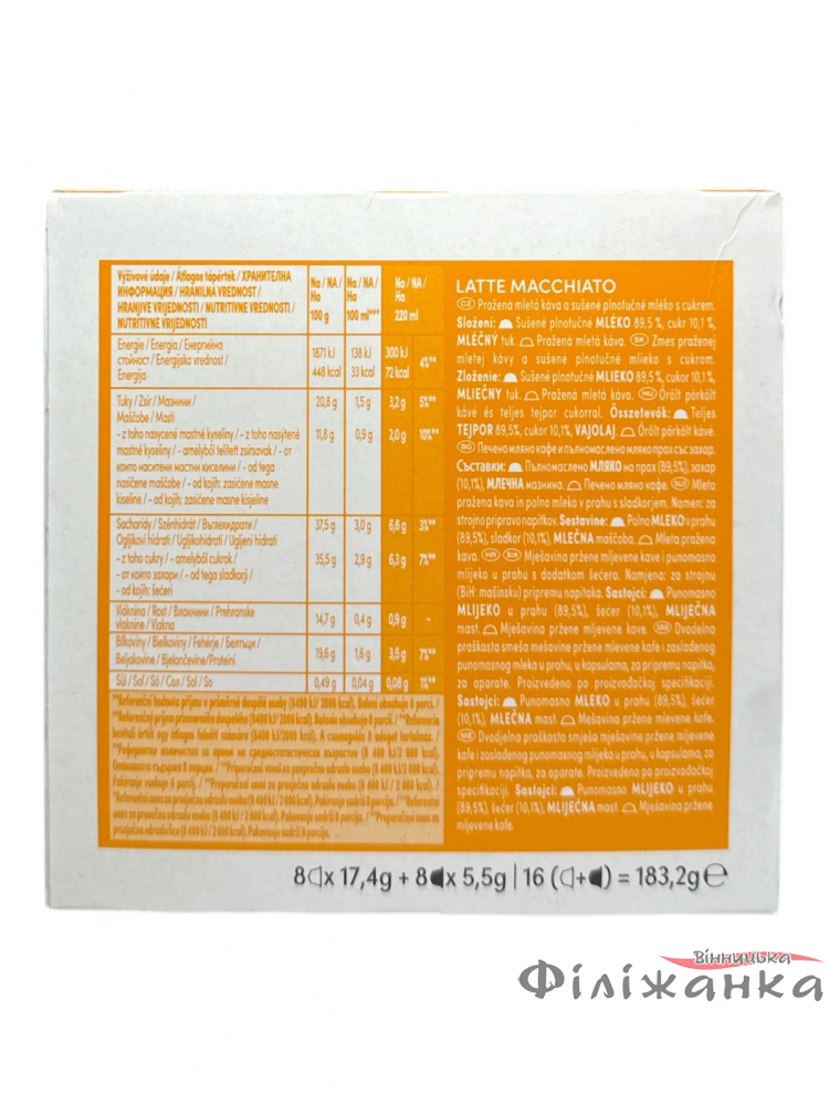 Для вашої зручності, ми зібрали ключові характеристики Кави Nescafe Dolce Gusto Latte Macchiato: