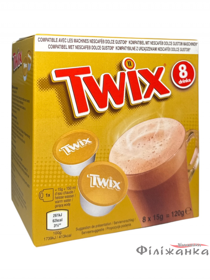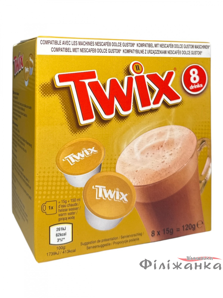 Відкрийте для себе унікальне поєднання кавової класики та легендарного батончика у кожній чашці з Кавою Nescafe Dolce Gusto Twix. Цей неперевершений напій у капсулах перенесе вас у світ солодких мрій, де насичений кавовий смак гармонійно переплітається з улюбленими нотками Twix, даруючи моменти справжнього задоволення.