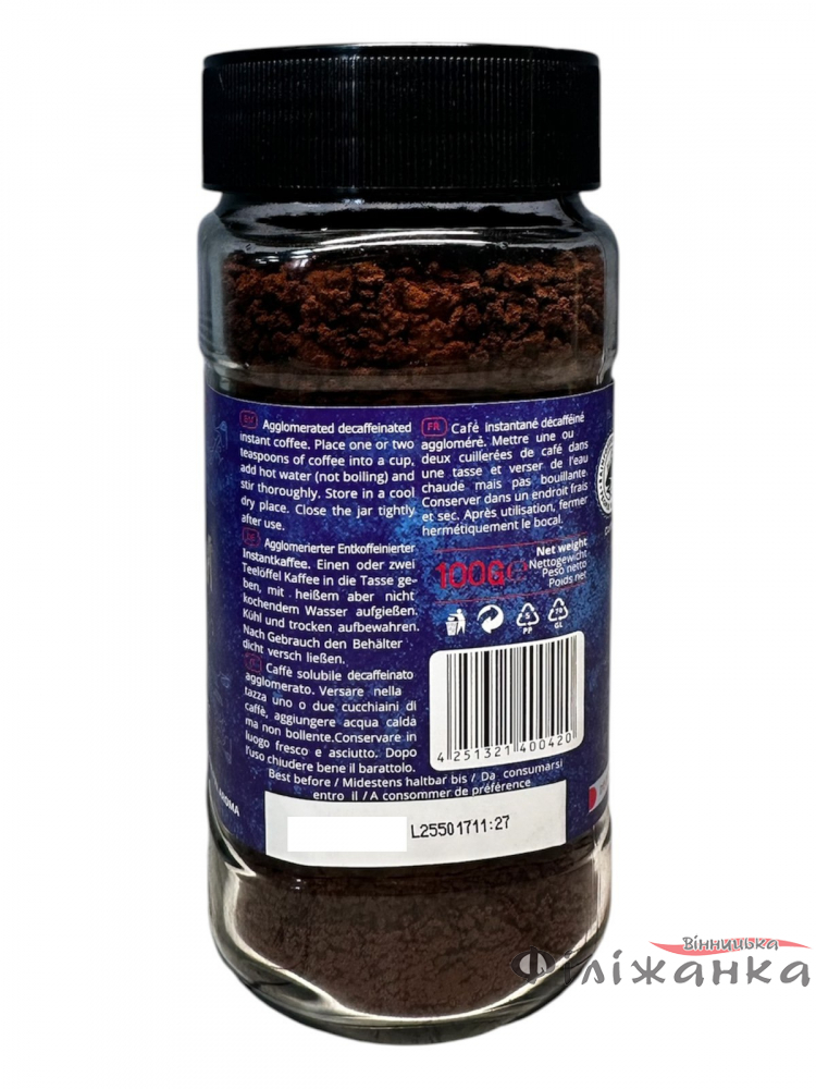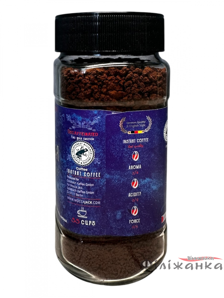 Кава Mocca Jack Decaffeinated агломерована розчинна без кофеїну 100 г у скляній банці (61216)