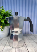 Виготовлена з високоякісного алюмінію, кавоварка Magio 59103 гарантує швидке та рівномірне нагрівання, що є запорукою ідеальної екстракції кавових олій. Її міцний корпус сірого кольору додає виробу сучасності та елегантності, легко інтегруючись у будь-який кухонний інтер'єр.