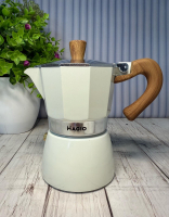 Корпус кавоварки виготовлений з високоякісного алюмінію, що забезпечує швидкий та рівномірний нагрів, а також довговічність використання. Білий колір корпусу надає їй особливої елегантності та дозволяє легко вписатися в інтер'єр будь-якої кухні, додаючи нотку сучасної естетики. Ручка виконана з термостійкого пластику, гарантуючи безпечне та зручне використання без ризику обпектися гарячою поверхнею.