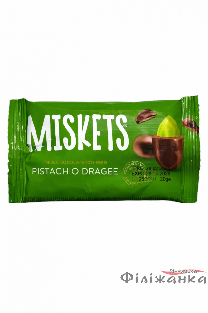 Драже Miskets фісташка в молочному шоколаді 24шт*20 г (61196)