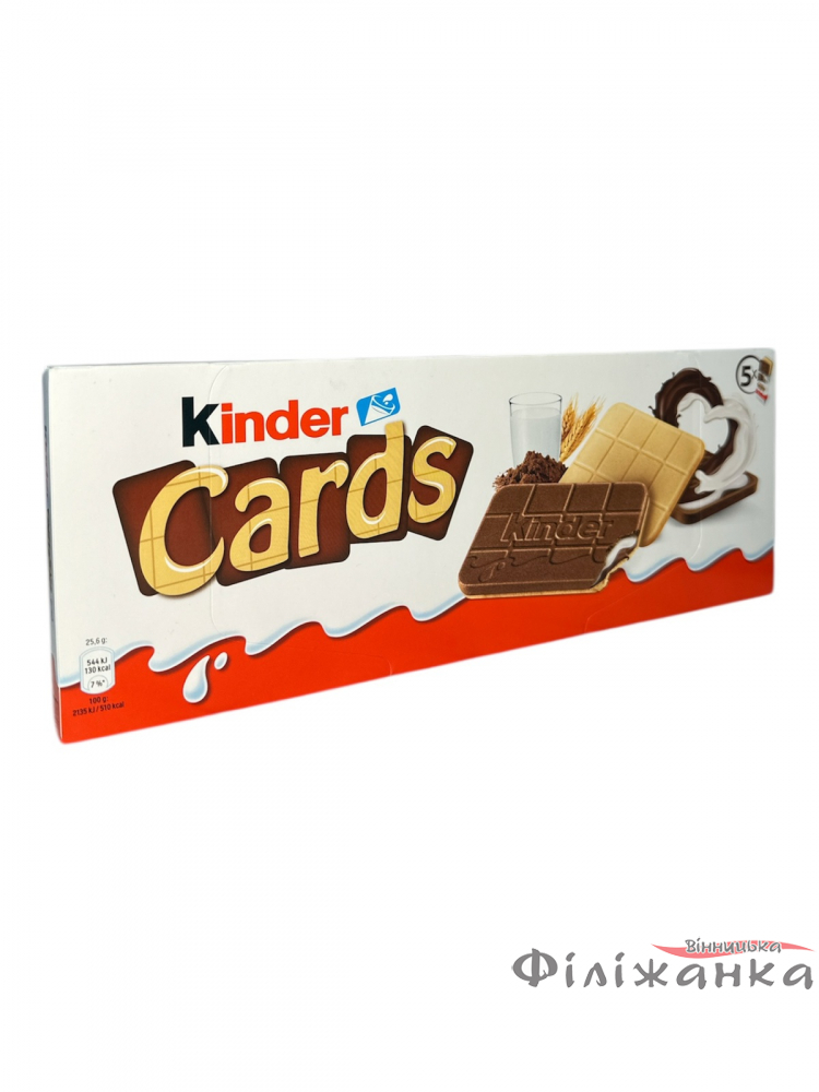 Кожна комерційна упаковка Kinder Cards містить 5 окремих порцій печива, загальною вагою 128 грамів. Це надзвичайно зручний формат як для індивідуального споживання, так і для того, щоб поділитися радістю та смаком із близькими. Продукт розфасований безпосередньо в Італії, що гарантує найвищі стандарти якості та оригінальний смак Kinder. Зручна та міцна картонна коробка забезпечує збереження свіжості та цілісності кожної вафельки, від моменту виробництва до вашого столу.