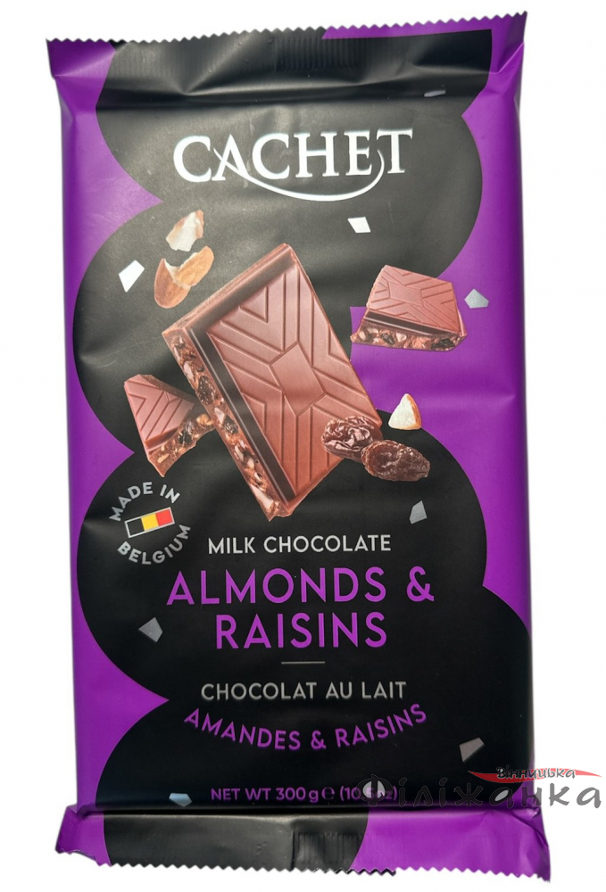 Cachet - це ім'я, що стало синонімом якості та глибоких традицій бельгійського шоколадного мистецтва. Продукція цього бренду відома у всьому світі завдяки використанню лише найкращих інгредієнтів та неухильному дотриманню класичних рецептур, що передаються з покоління в покоління. Шоколад Cachet Almonds & Raisins не є винятком; він розфасований безпосередньо в Бельгії, що є гарантією його автентичності та відповідності найвищим стандартам якості. Це незмінна якість у кожній плитці, яка стане чудовим доповненням до ранкової кави, вечірнього чаювання або просто як елегантний солодкий перекус протягом дня.
