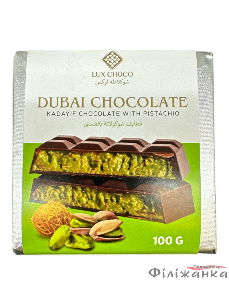 Зануртесь у вишуканий світ східних смаків з Дубайським шоколадом Кадаїф від Lux Choco. Цей унікальний десерт вагою 100 грамів є втіленням майстерності кондитерів з Об'єднаних Арабських Еміратів, де він був ретельно розфасований. Це не просто шоколад, а справжня гастрономічна подорож, що поєднує ніжність молочного шоколаду з екзотичною текстурою хрусткого кадаїфу та благородним смаком добірних фісташок. Кожен шматочок дарує незабутні відчуття, переносячи вас до серця розкішного Дубая.
