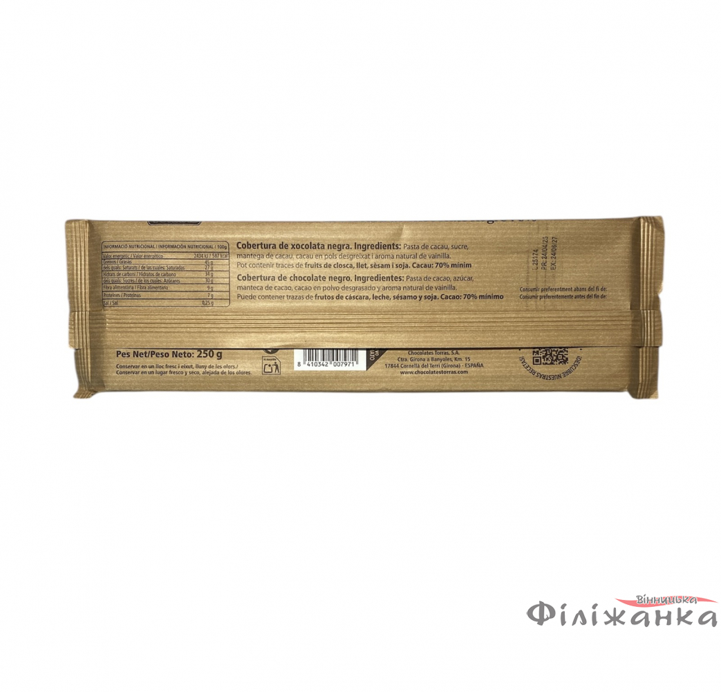 Шоколад Torras Posters чорний 70% какао 250 г (60856)