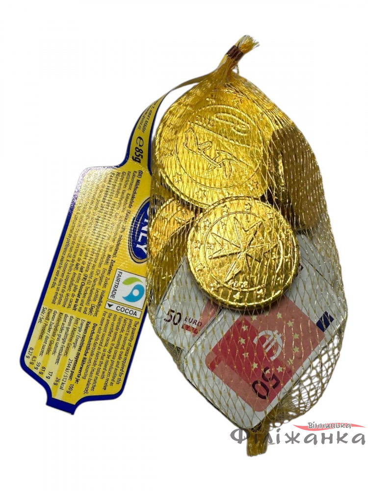 Шоколадні Цукерки Банкноти та монети в сітці 85гр (61163)