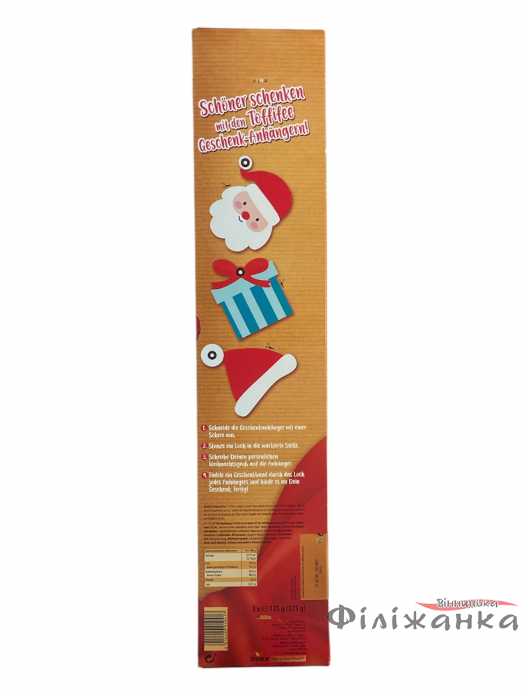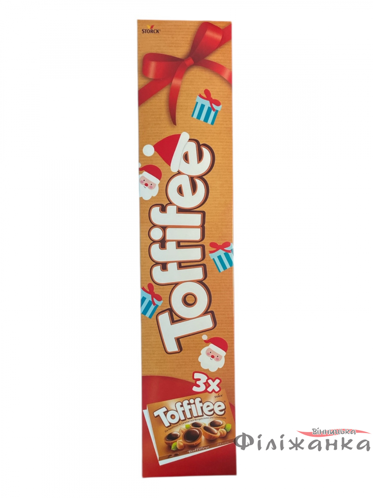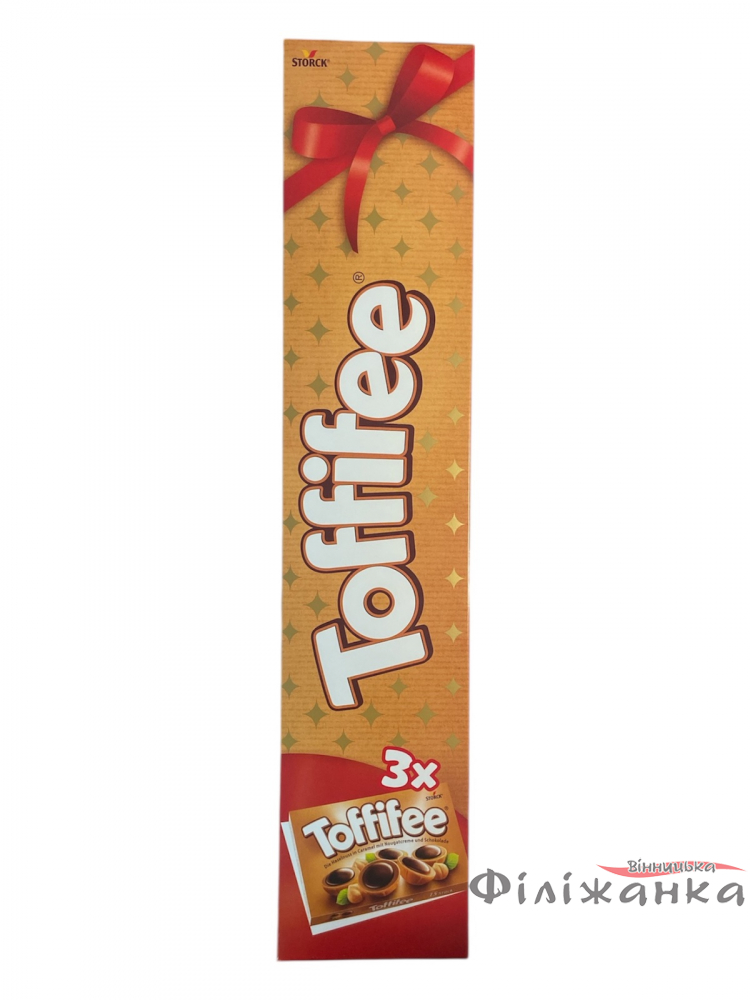 Продуманий до дрібниць дизайн комерційної упаковки робить цей набір ідеальним варіантом для презенту. Розфасовані в Швейцарії, цукерки Toffifee гарантують бездоганну якість та свіжість. Набір складається з трьох окремих упаковок по 125 грамів, що дозволяє насолоджуватися улюбленими солодощами поступово або ж поділитися ними з родиною та друзями. Міцна картонна коробка надійно захищає цукерки та додає їм презентабельності.