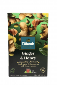 Характеристики Чай Dilmah черный цейлонський с имбирем и медом 20 пакетиков (60676)