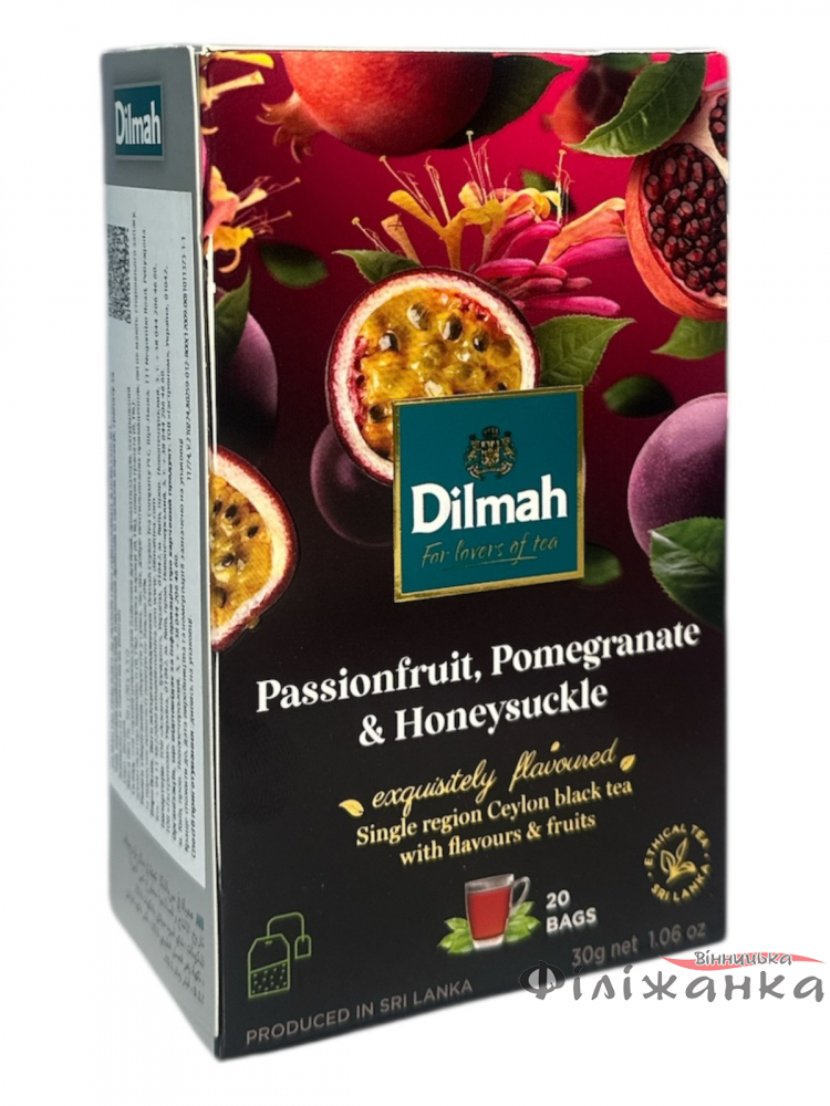 Чай Dilmah черный со вкусом маракуи, граната и жимолости 20 пакетиков (60530)