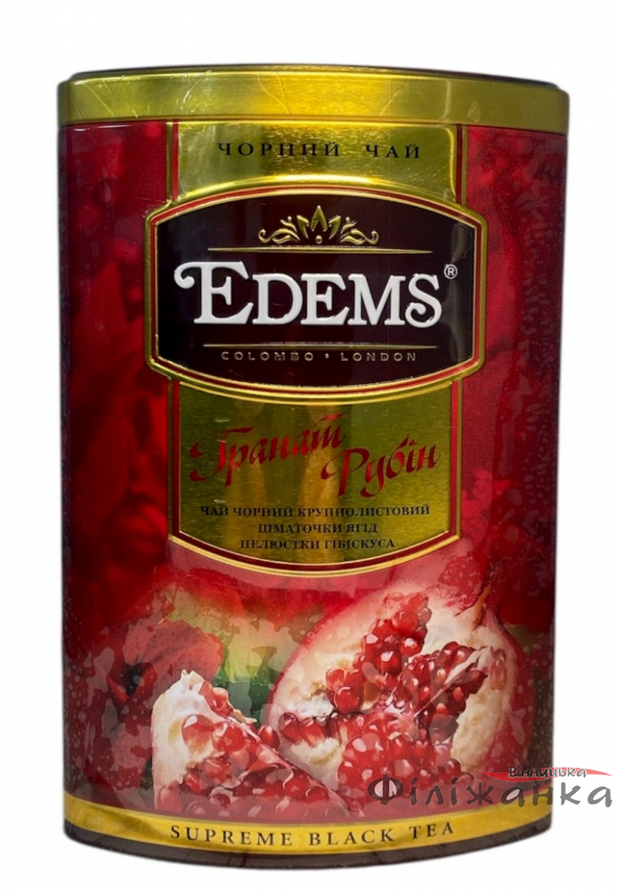 Чай Edems Granate Ruby черный Гранат Рубин с кусочками ягод и лепестками гибискуса в металической банке 200 г (60678)