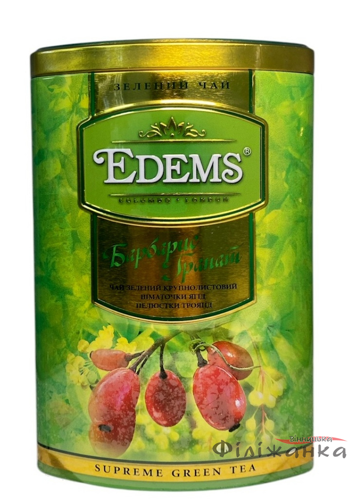 Чай Edems Barberry Garnet зеленый Барбарис Гранат с кусочками ягод и лепестками розы в металической банке 200 г (60679)