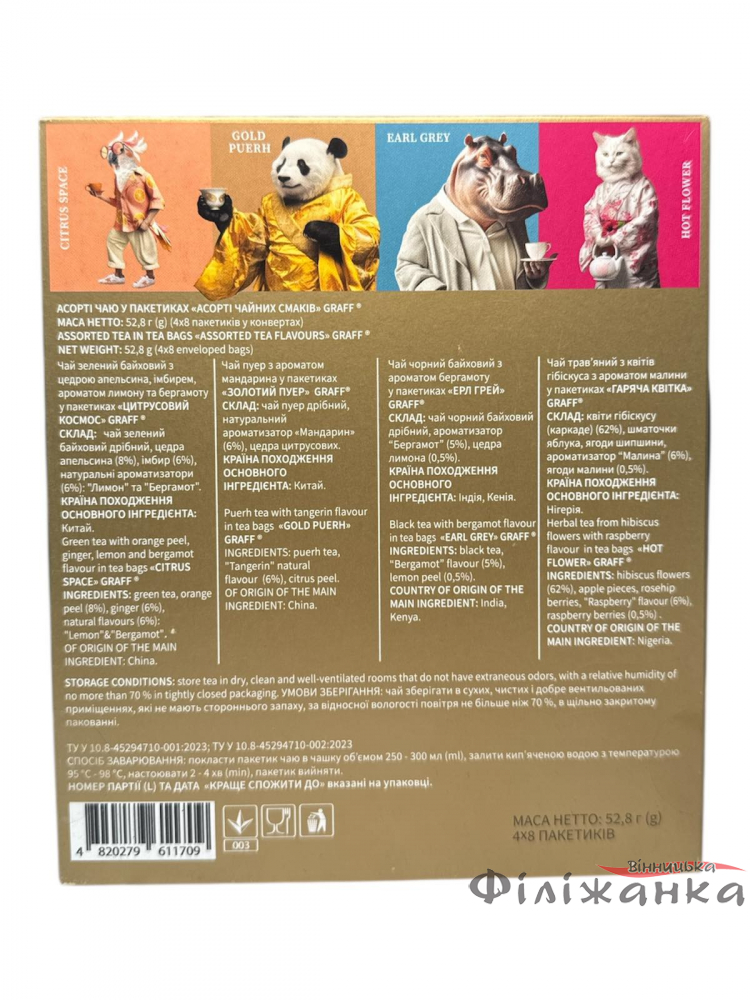 Чай Graff черный и зеленый Ассорти чайных вкусов 32 пакетика по 1,5г (61034)