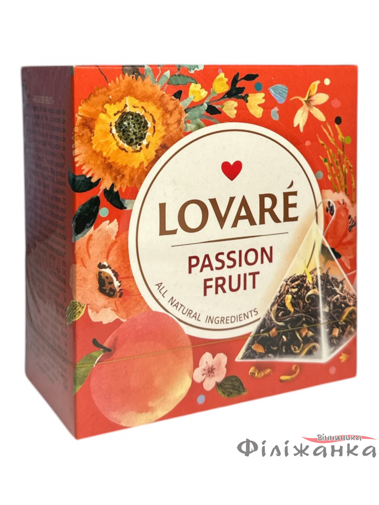 Чай Lovare Passion Fruit с цедрой апельсина, лепестками цветов и ароматом персика и маракуйи в пирамидках 15 шт х 2 г (60201)