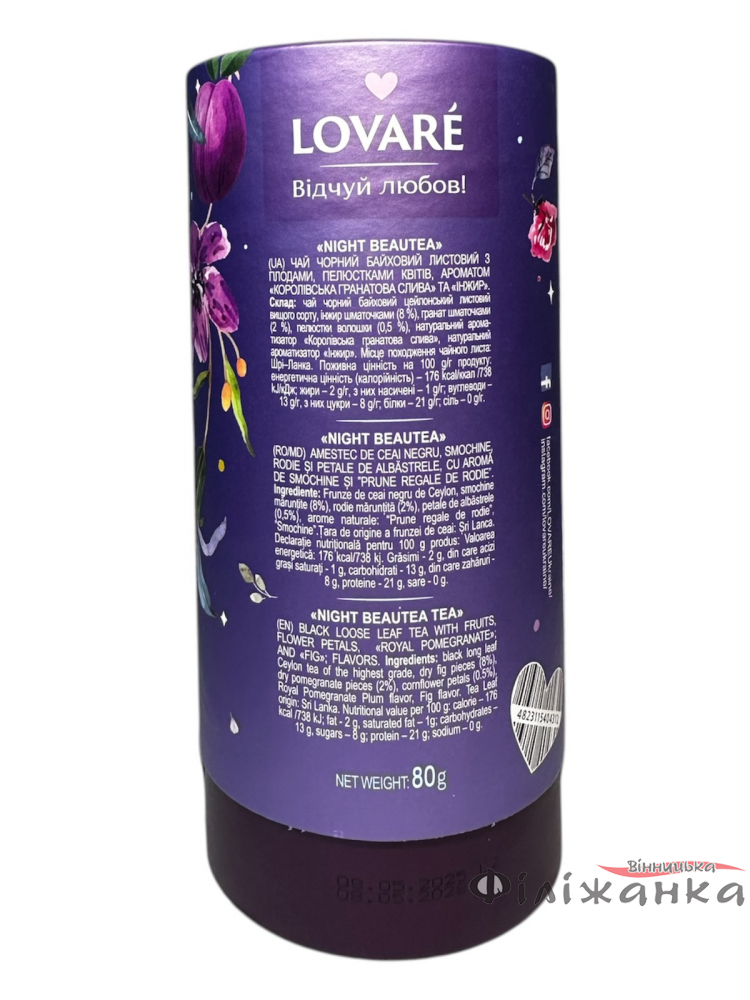 Чай Lovare Night Beautea черный с гранатом и инжиром 80 г (59238)