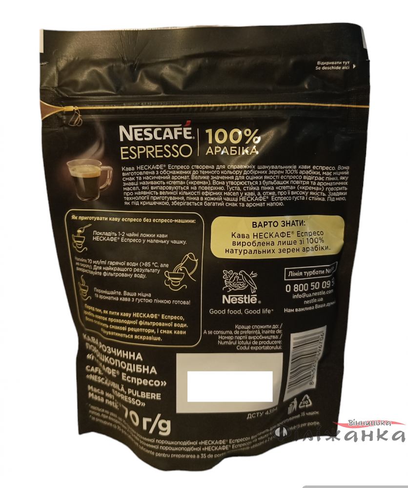 Кофе Nescafe Espresso 100% арабика растворимый порошкообразный 70 г (58056)
