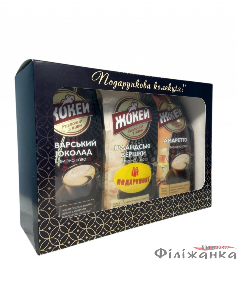 Набор молотого кофе Жокей Ирландские сливки 150 г + Баварский шоколад 150 г + Амаретто 150 г (60858)