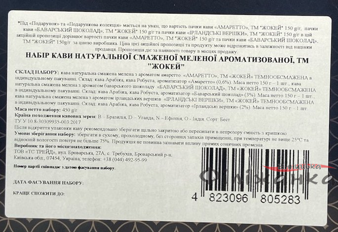 Характеристики Набор молотого кофе Жокей Ирландские сливки 150 г + Баварский шоколад 150 г + Амаретто 150 г (60858)