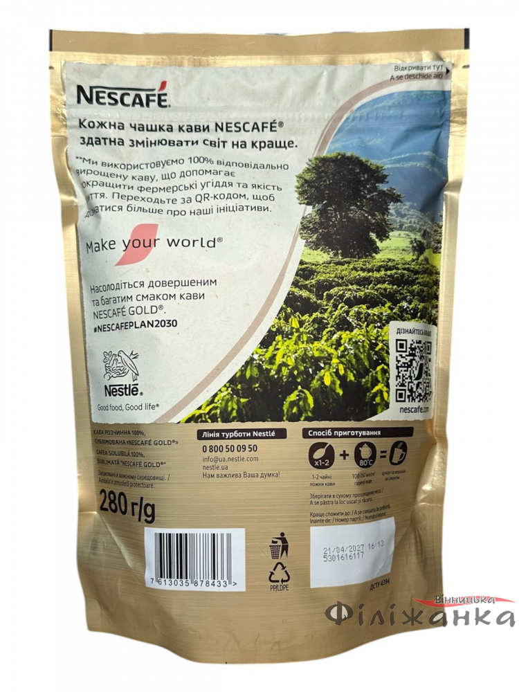 Кофе Nescafe Gold растворимый сублимированный 280 г (52685)