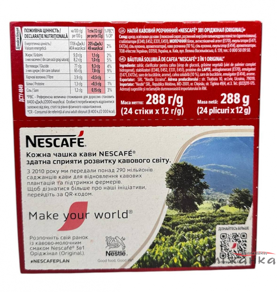 Кофе Nescafe Original 3в1 в стиках 24 шт х12 г (491)