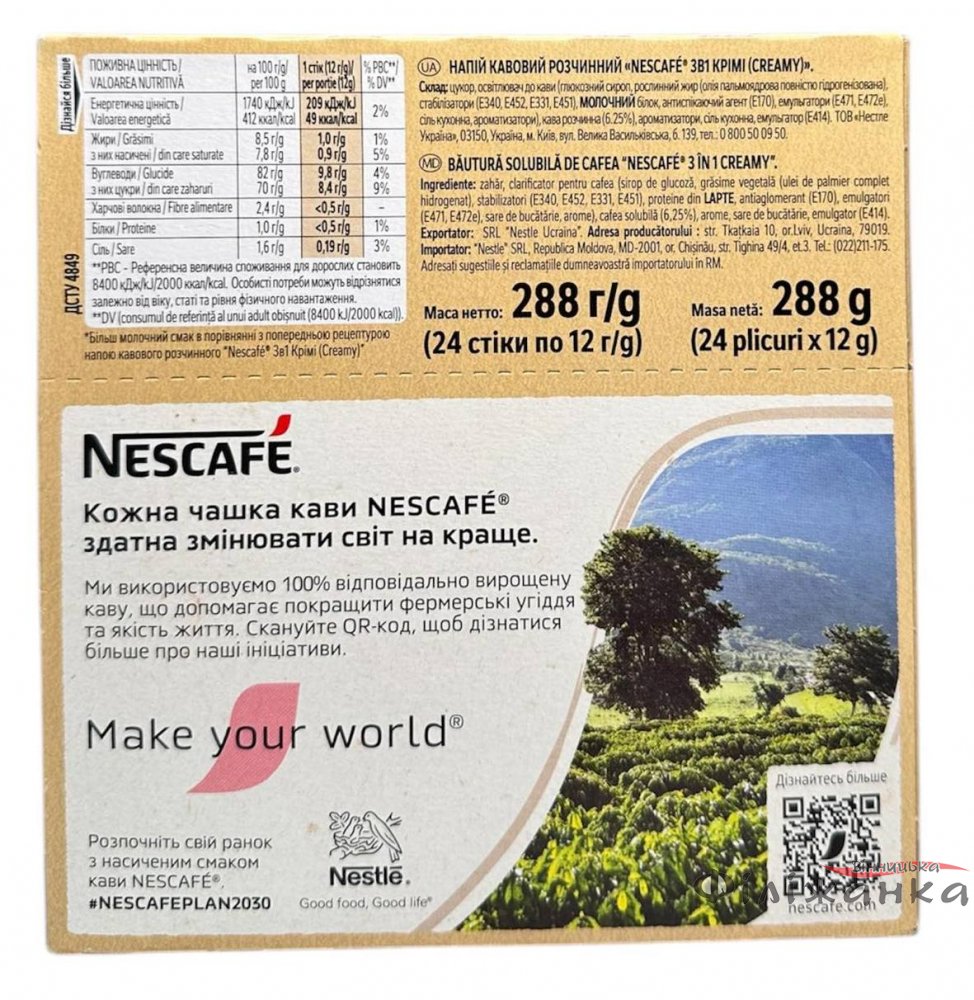 Кофе Nescafe Creamy 3в1 в стиках 24 шт х 12 г (490)