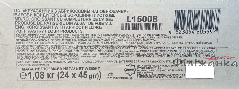 Круассанчик Lukas с абрикосовым наполнителем 24 шт *45 г (54084)