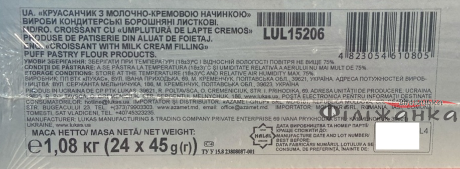 Круассанчик Lukas с молочно-кремовой начинкой 24 шт *45 г (54086)