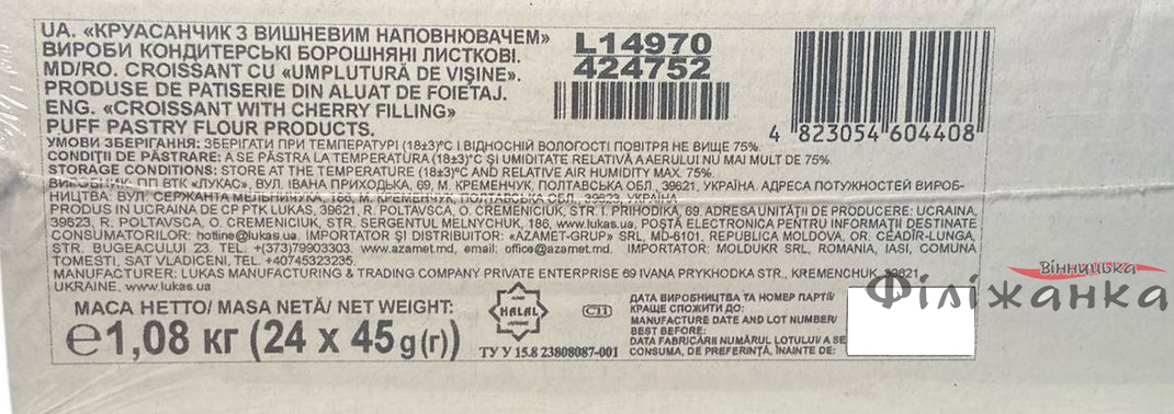 Круассанчик Lukas с вишневим наполнителем 24 шт *45 г (54085)