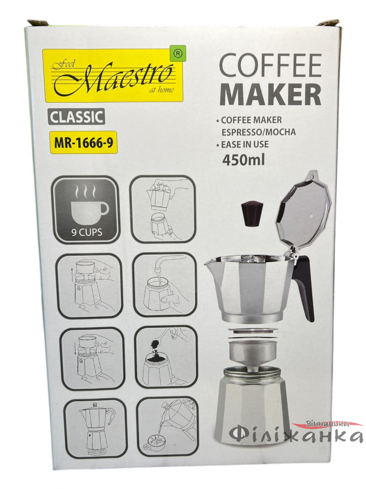 Гейзерная кофеварка Maestro 450мл "Espresso Moka" 1666-9 алюминиевая (59396)