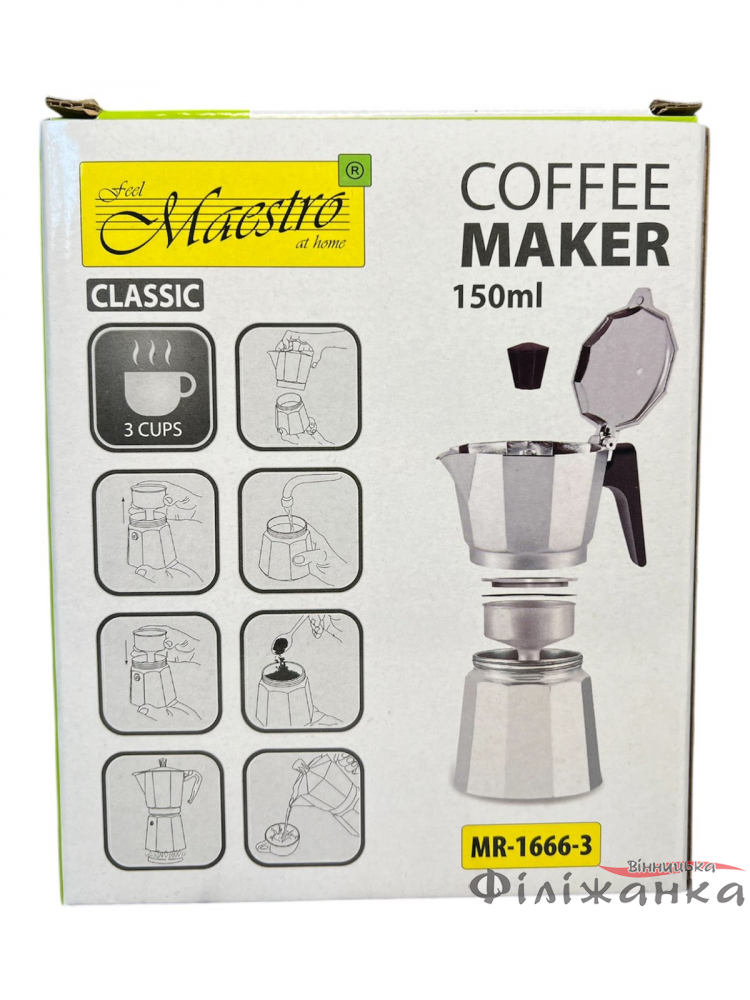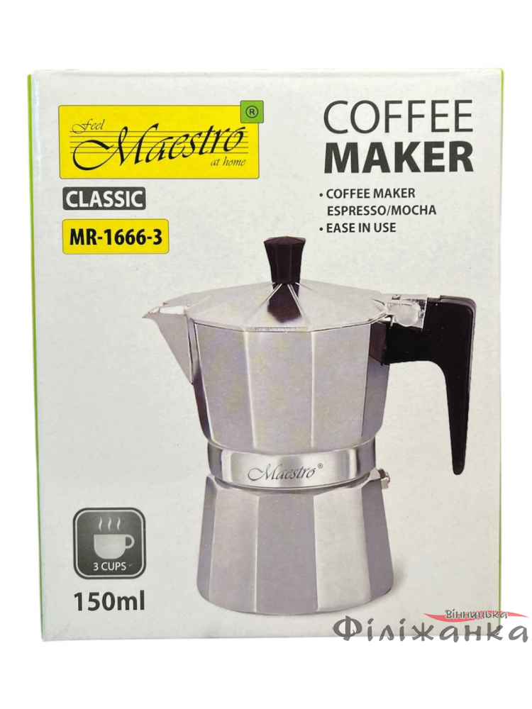 Гейзерная кофеварка Maestro Espresso Mocha алюминиевая 150 мл 3 чашки (58778)