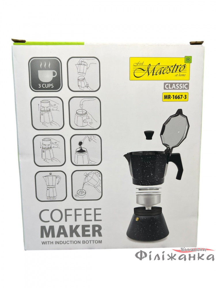 Гейзерная кофеварка Maestro 150 мл Espresso Mocha 3 чашки, индукция (58252)