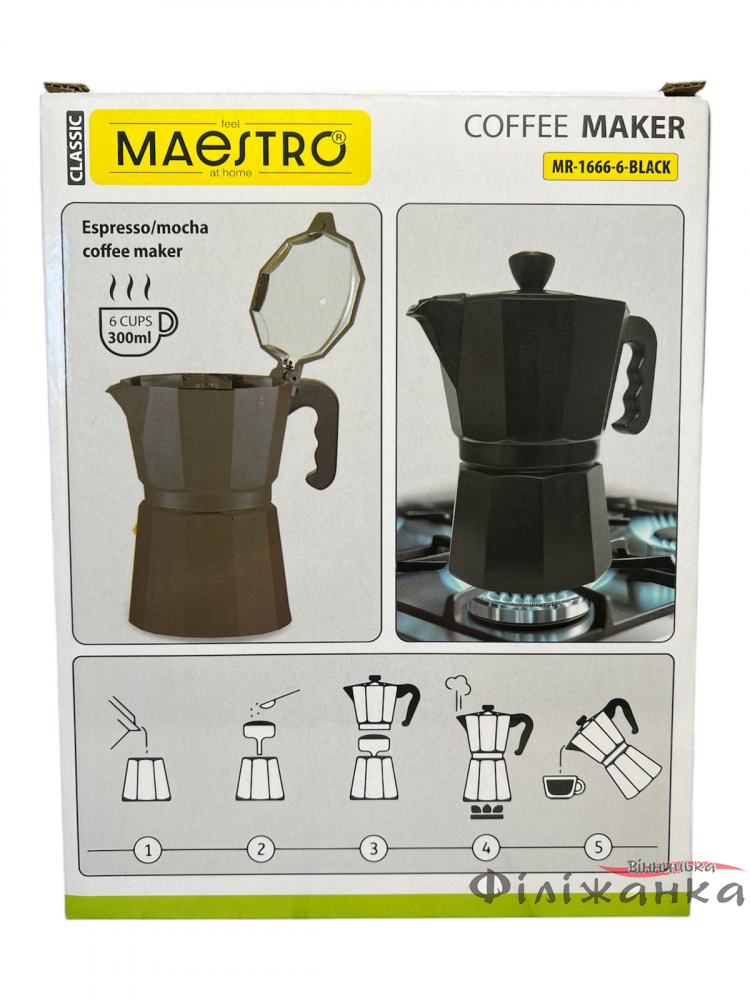 Гейзерная кофеварка Maestro Espresso Mocha алюминиевая 300 мл 6 чашек (59619)