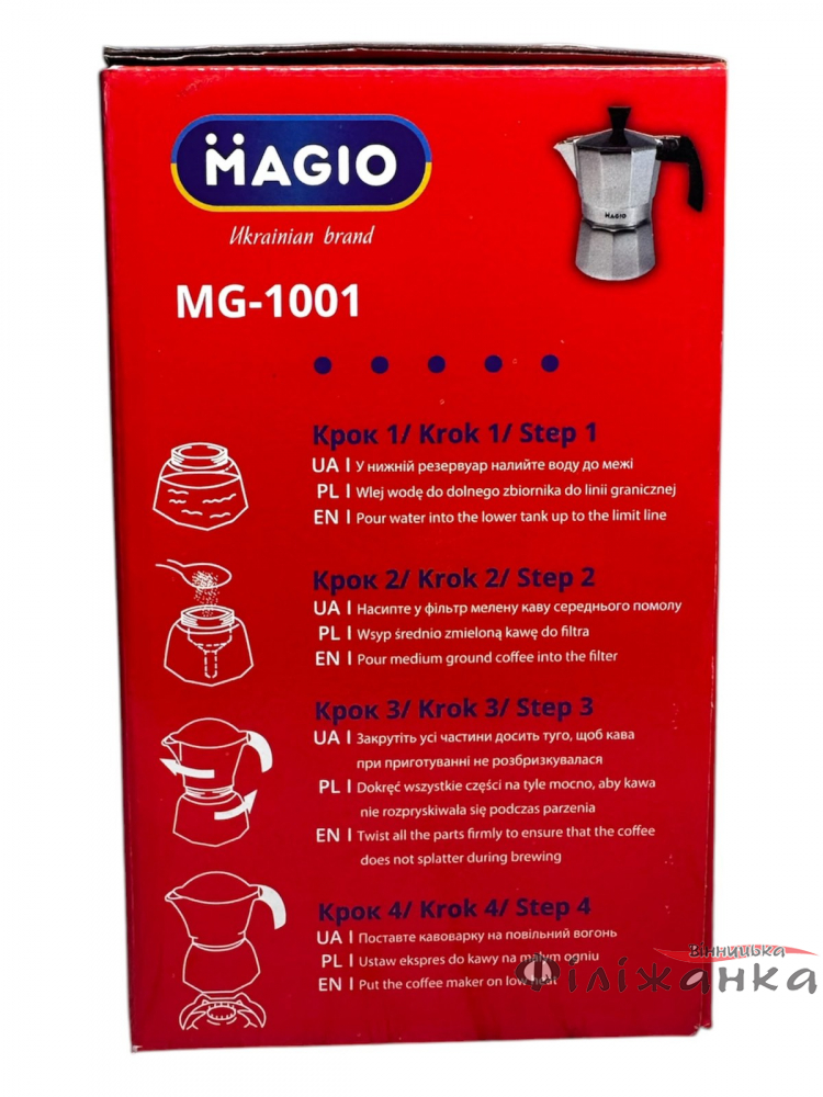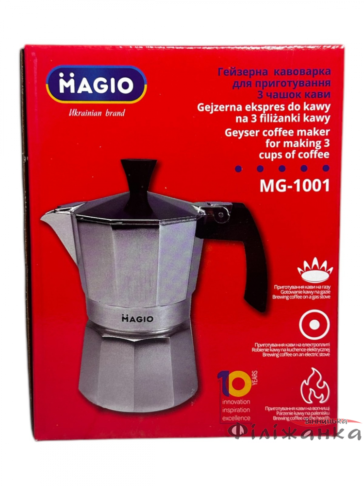 Гейзерная кофеварка Magio алюминиевая 150 мл 3 чашки, ручка с термоустойчивого пластика (59102)