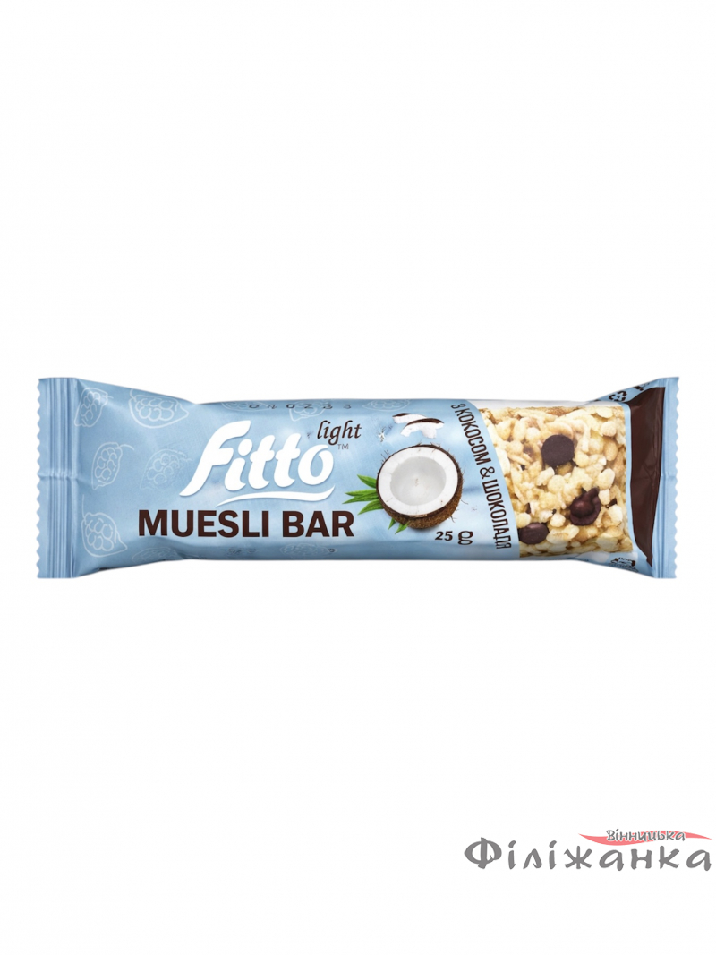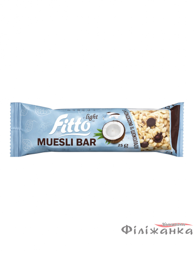 Батончик - мюсли Fitto light Muesli Bar с кокосом и шоколадом глазурований 12 шт*25 г (58261)