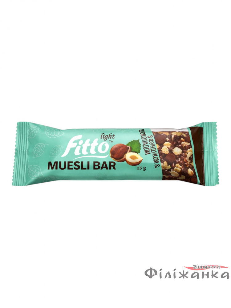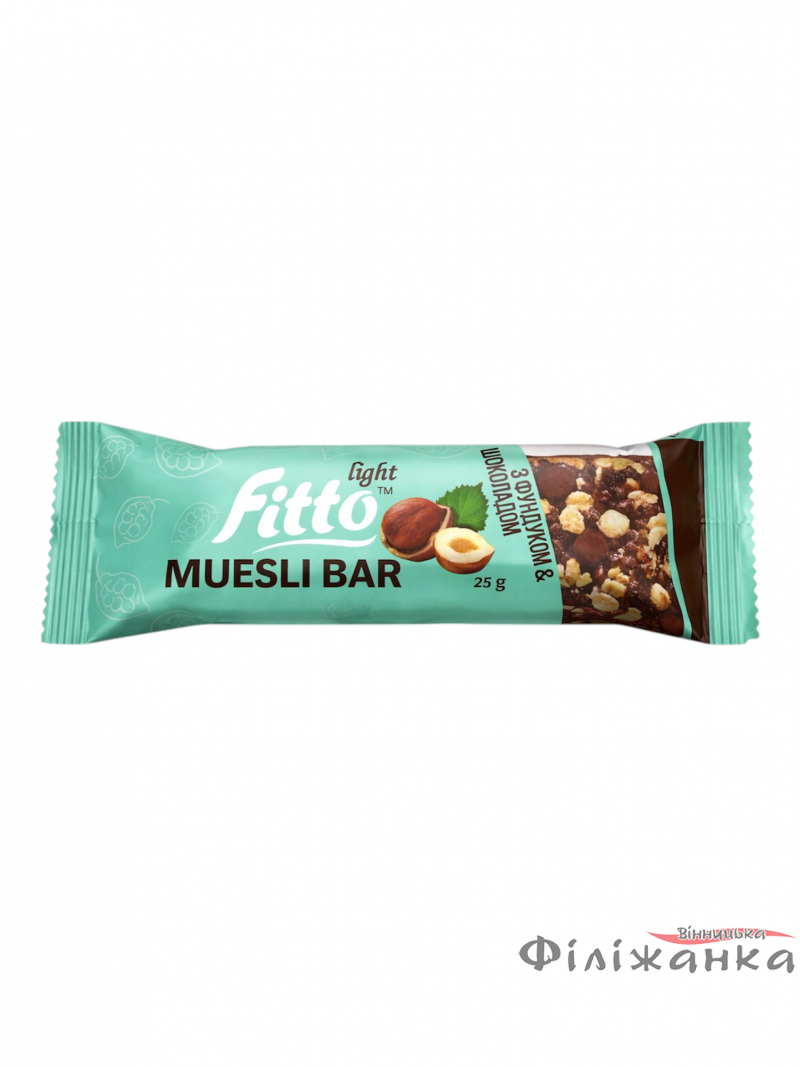 Батончик - мюсли Fitto light Muesli Bar с фундуком и шоколадом глазированный 12 шт*25 г (58510)