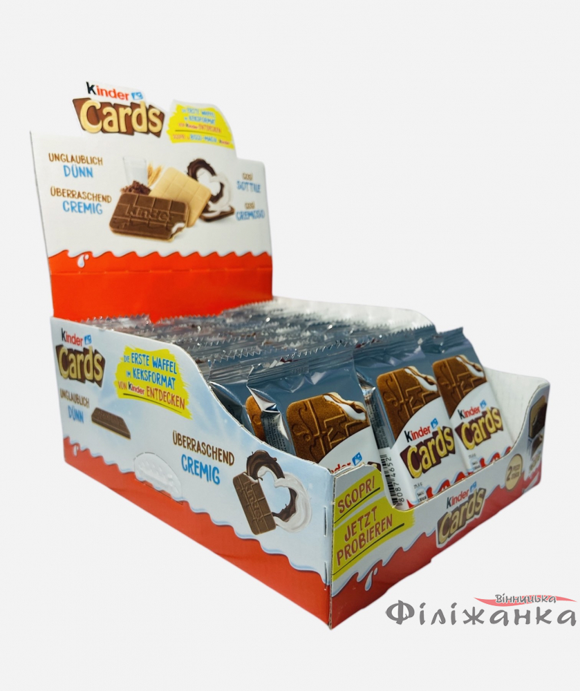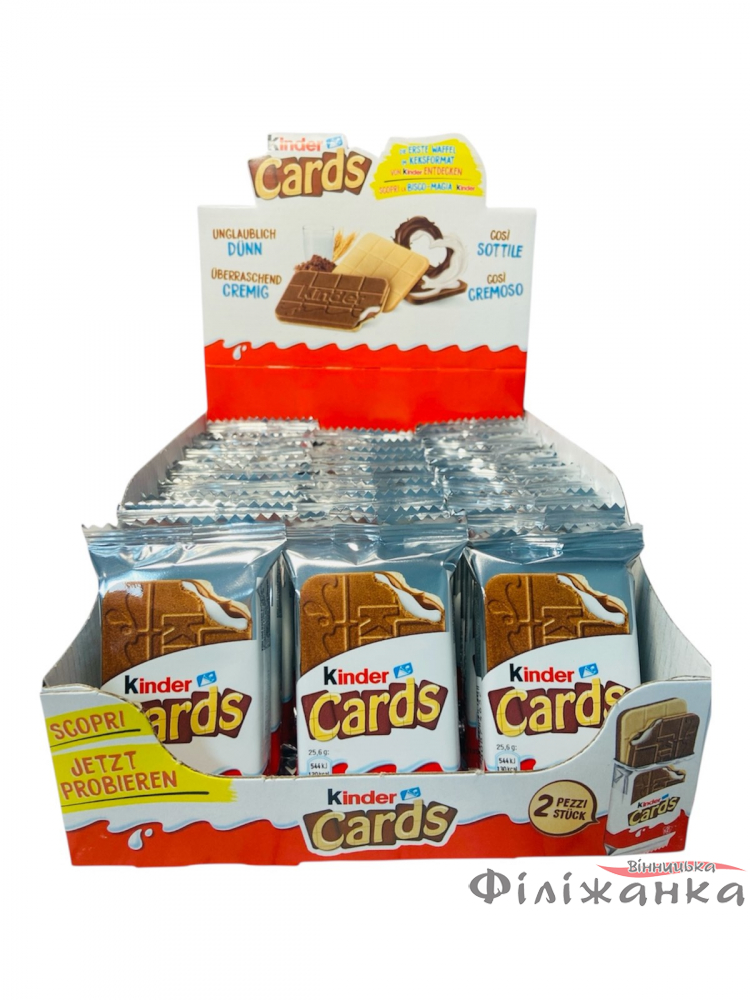 Печенье Kinder Cards с мягким молочным кремом и хрустящей вафелькой 25,6 г (60865)